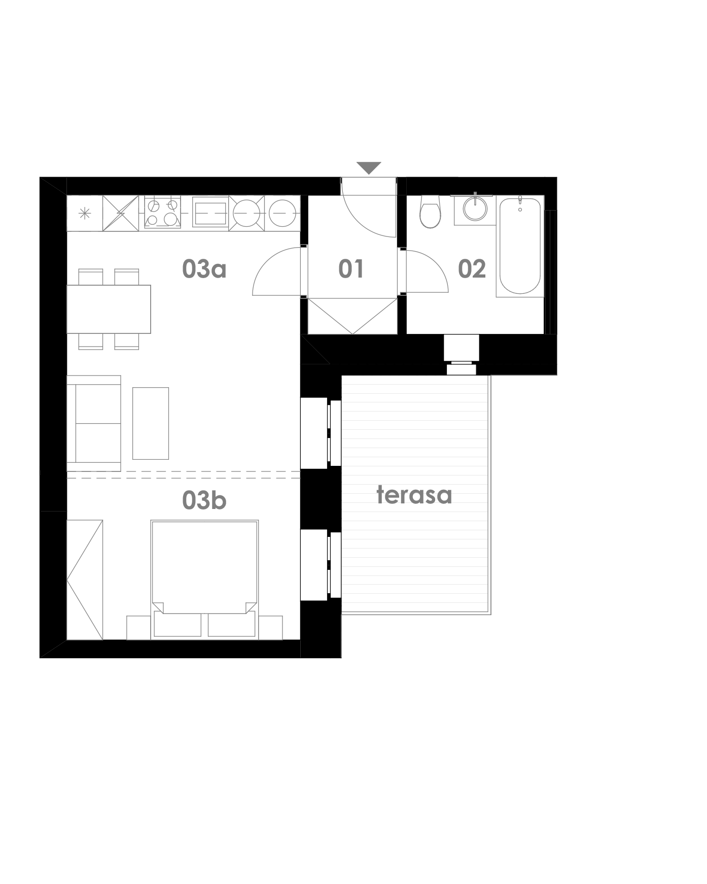 Prodej bytu 1+kk s terasou - Rezidence Krokus